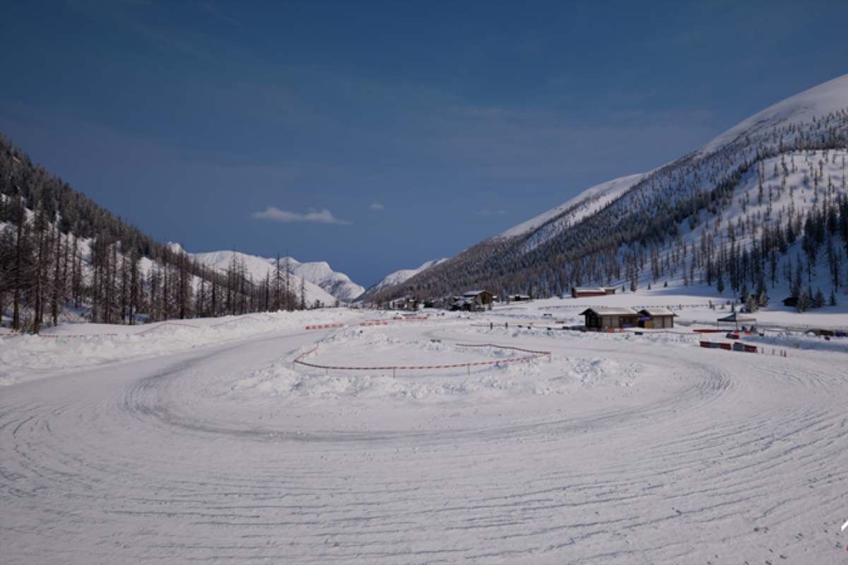 La versione 0.2 segna infatti l’arrivo delle superfici innevate e ghiacciate con un nuovo scenario ambientato a Livigno, sulle Alpi italiane. Non una semplice ambientazione “a tema”, ma la riproduzione laser scan del Ghiacciodromo di Livigno, struttura reale e ben nota nel mondo della guida su ghiaccio. È un dettaglio che conta, perché sposta l’attenzione dalla spettacolarità fine a sé stessa alla simulazione di condizioni estreme, quelle che mettono davvero in crisi il controllo del veicolo.