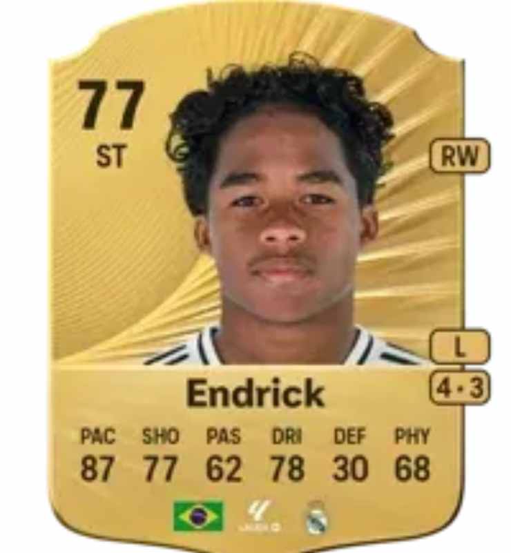 Partiamo dunque dal più forte in assoluto, quello che tra i consigliati di oggi vi costerà maggiormente ma che ha un potenziale così enorme da non poter essere sottovalutato, ossia il brasiliano Endrik. Prestato dal Real Madrid al Lione per mancanza di spazio a Madrid, il talento scuola Palmeiras sta mostrando in Francia ciò per cui è stato acquistato a peso d’oro prima di compiere 18 anni. Il suo valore complessivo in FC 26 è di 71 ma il suo potenziale è di 91.
